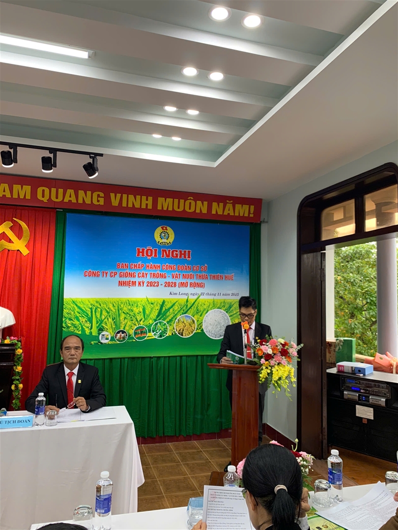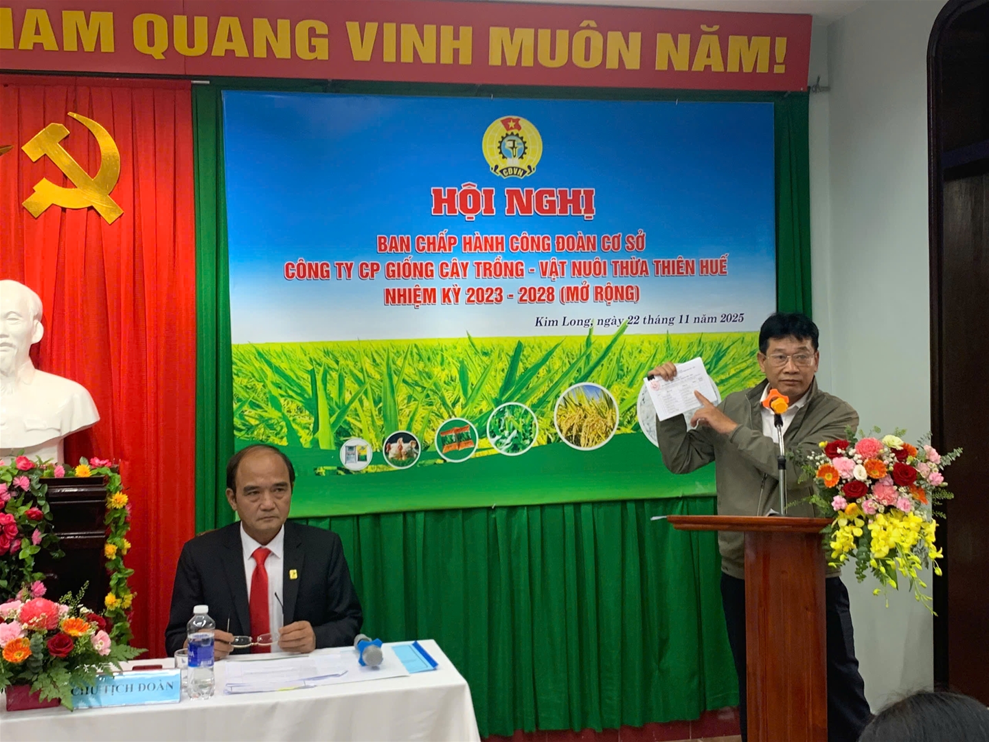 Hội nghị Ban chấp hành Công đoàn cơ sở Công ty cổ phần Giống cây trồng Vật nuôi Thừa Thiên Huế. Nhiệm kỳ 2023-2028 (mở rộng) ngày 22-11-2025.